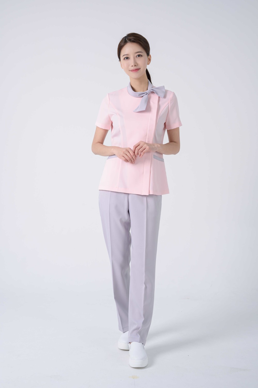 환한 핑크 컬러에 잃어버릴 염려없는 리본타이 포인트.