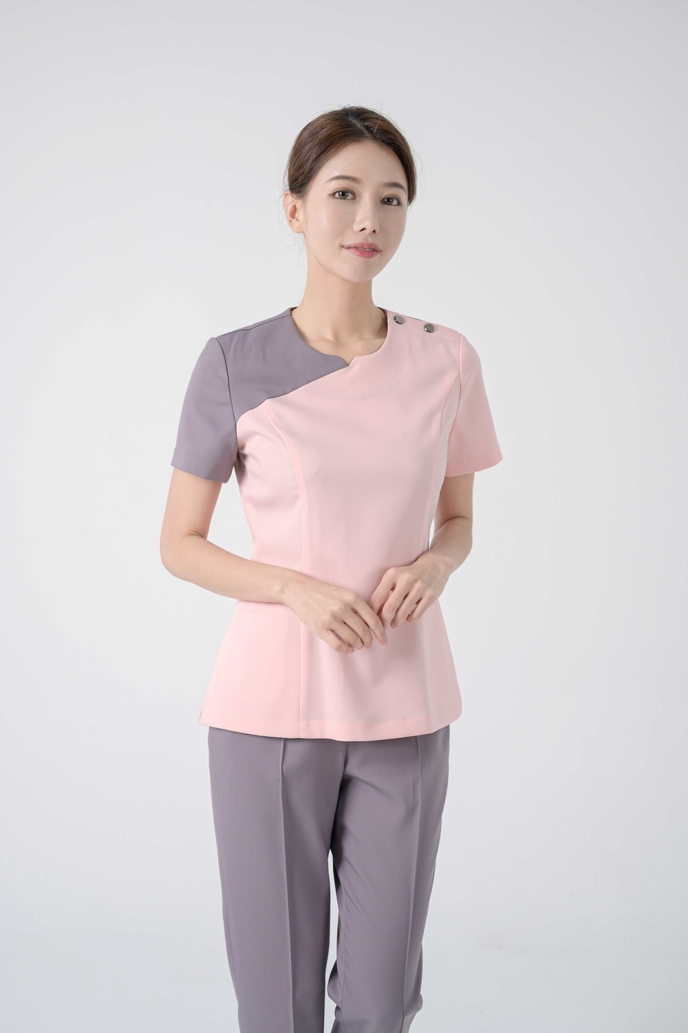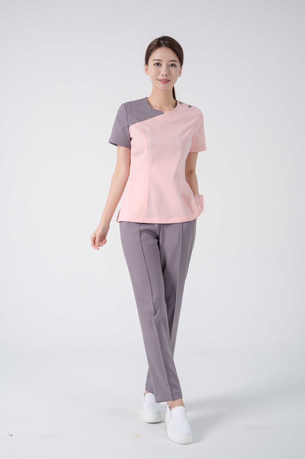어깨 단추 여밈과 뒤쪽 지퍼여밈으로 탈,착용이 편리합니다.