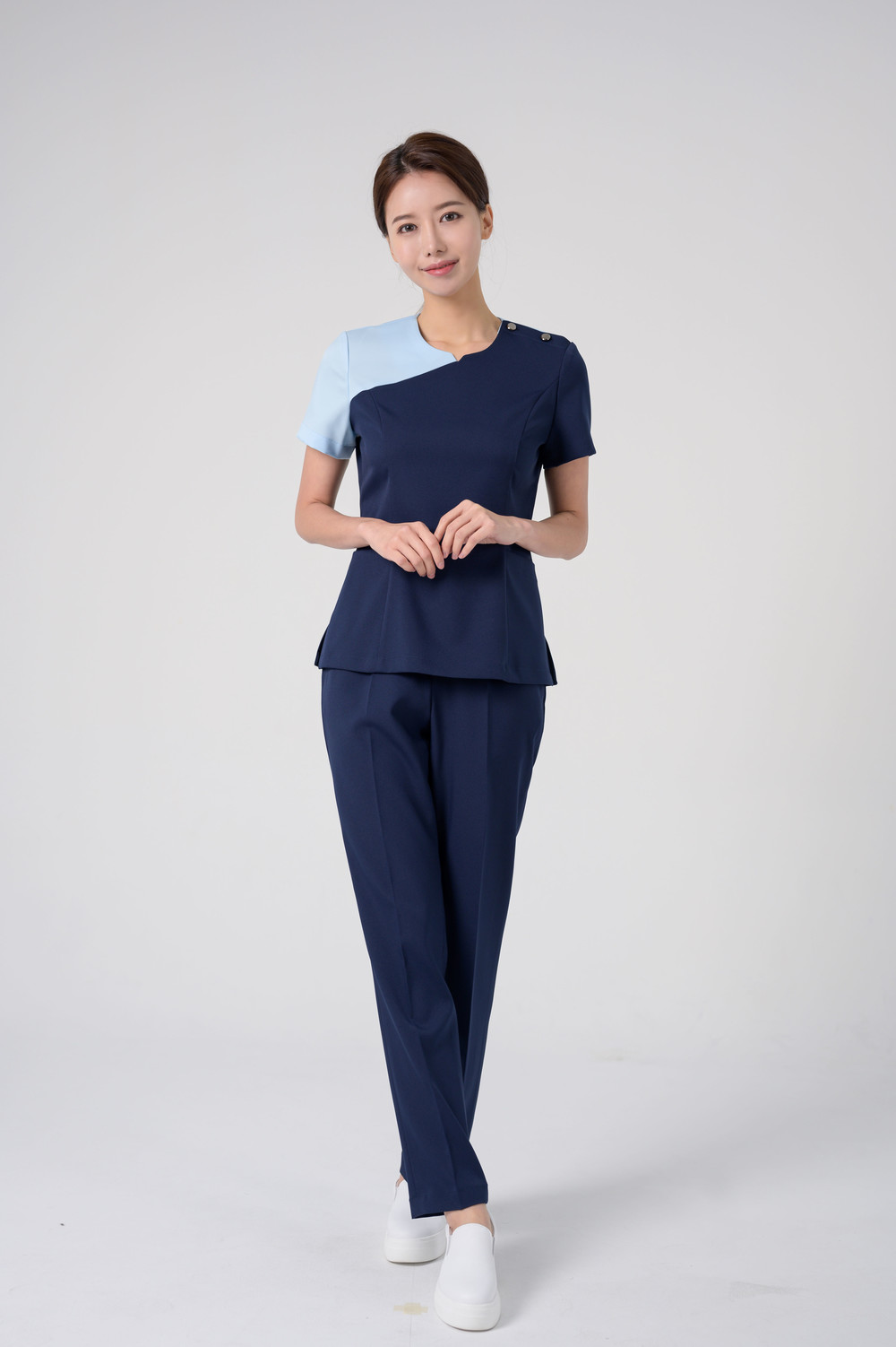 어깨 단추 여밈과 뒤쪽 지퍼여밈으로 탈,착용이 편리합니다.