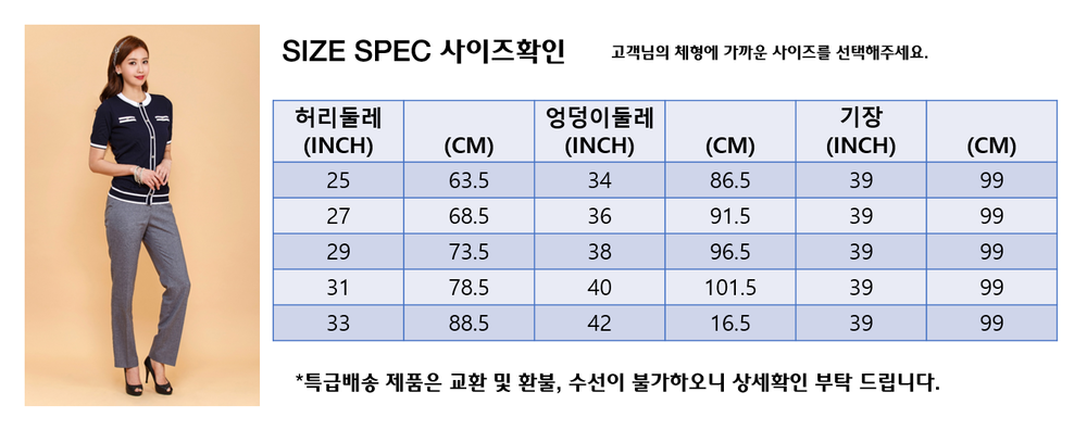 사이즈를 확인하여 고객님들의 체형에 맞는 사이즈를 선택해주세요!
