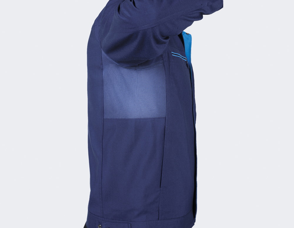 옆 솔기 (겨드랑이)에 통풍성을 고려한 망사 사용.